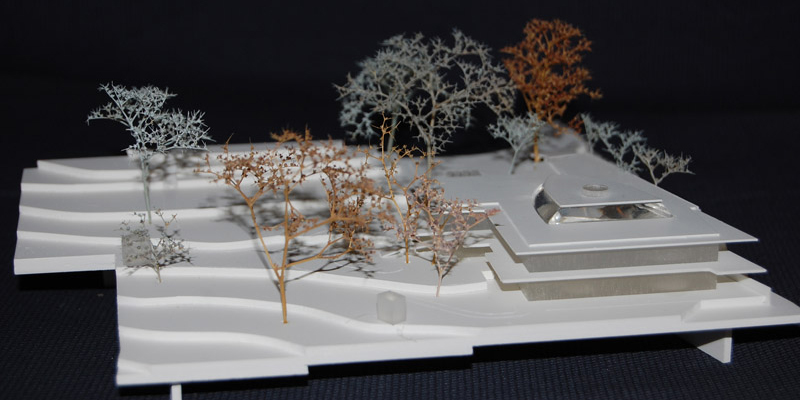 Statt der geforderten Eingeschossigkeit wurde eine 2- geschossige in den Hang integrierte Form vorgeschlagen. Das Gebäudekonzept mit zentraler Halle als Zentrum des Hauses bietet kurze Wege, leichte Orientierung und unterstützt unterschiedliche pädagogische Konzepte. Die Halle bietet viel Bewegungsraum auch bei Schlechtwetter. Die Zweigeschossigkeit ermöglicht eine pädagogisch verträgliche Anzahl von Gruppen pro Geschoss, die Kinder bewahren Überblick. |